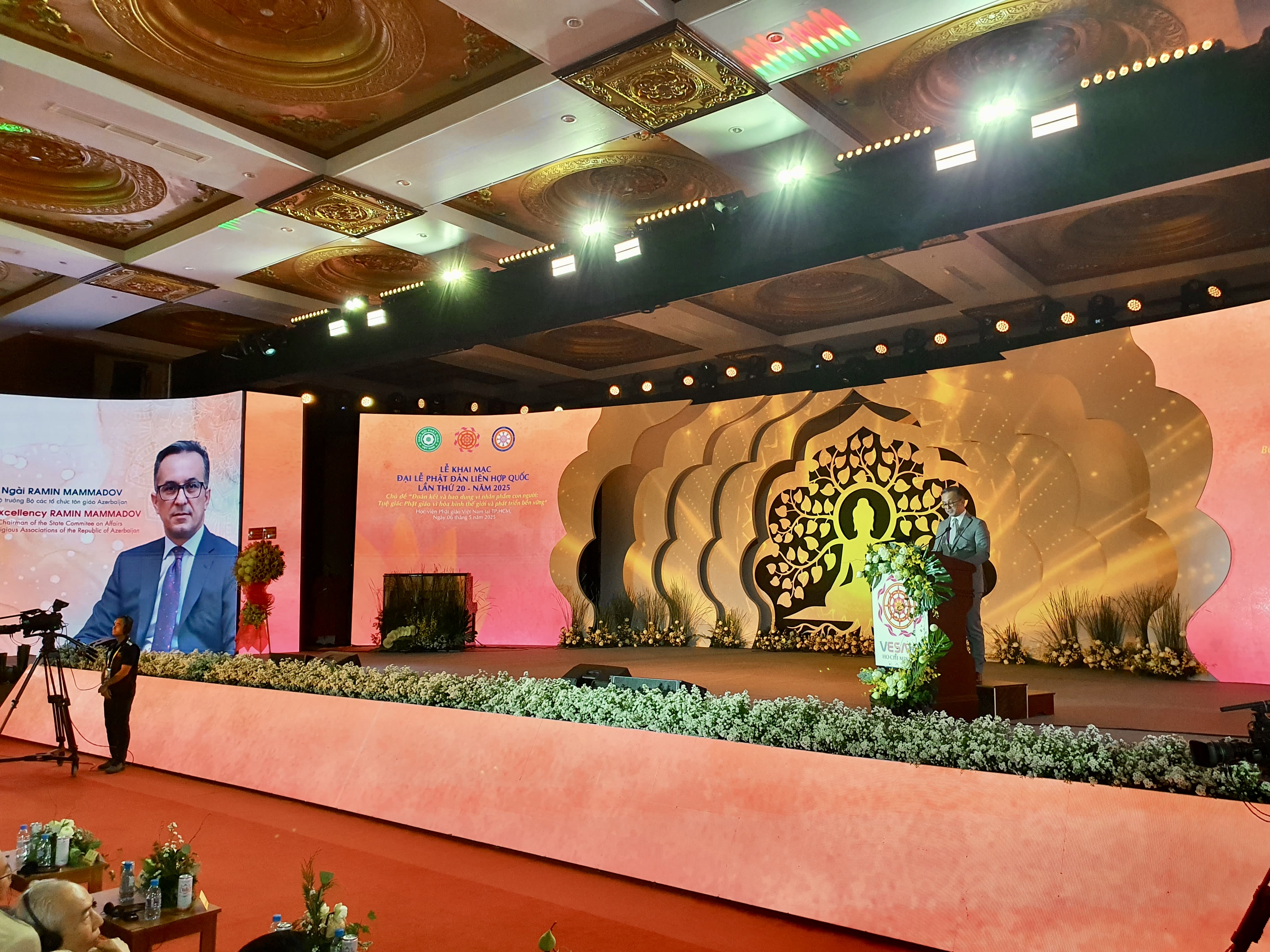 Dini Qurumlarla İş üzrə Dövlət Komitəsinin sədri Ramin Məmmədov mayın 6-da Vyetnam Sosialist Respublikasının Ho Şi MİN şəhərində "20-ci BMT Vesak Günü" münasibətilə keçirilən tədbirin açılış mərasimində iştirak edib.