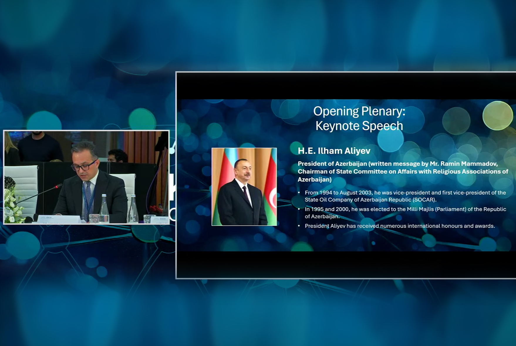 Azərbaycan Respublikasının Prezidenti İlham Əliyevin Qlobal Dialoq Forumunun iştirakçılarına ünvanlanmış məktubunu Dini Qurumlarla İş üzrə Dövlət Komitəsinin sədri Ramin Məmmədov oxuyub.