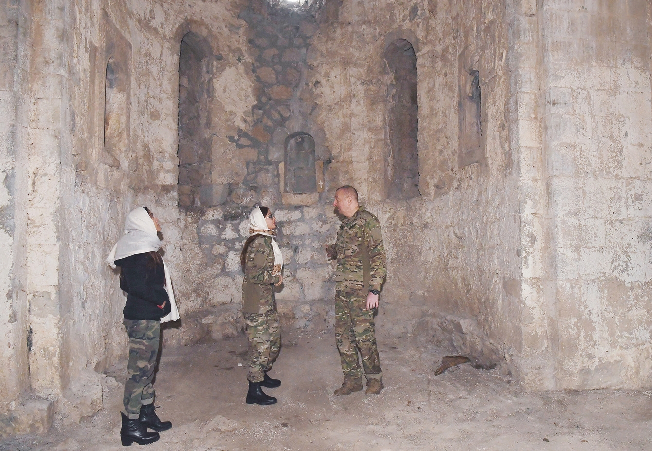 Prezident İlham Əliyev 2021-ci il martın 15-də Füzuli və Xocavənd rayonlarına səfəri zamanı Xocavənd rayonunun Hünərli kəndindəki alban məbədinin acınacaqlı vəziyyətinin, bu qədim alban məbədinin divarlarında yazılar yazılaraq ermənilər tərəfindən necə təhqir edildiyinin şahidi olmuş və bununla bağlı demişdir: “Bu kilsənin – alban məbədinin bu vəziyyətdə olması bir daha erməni saxtakarlığını göstərir. Erməni kilsəsi olsaydı, bunu təmir etdirərdilər. Sonra da bəziləri bizə irad tuturlar ki, biz xristian abidələrinə yaxşı baxmırıq. Bunu ermənilər bu günə salıblar. Uçurublar, dağıdıblar, qapını da yandırıblar. Azərbaycanın müxtəlif yerlərində xristian abidələri necə qorunur!? Bu qədim Alban kilsəsini görərlər bir müddətdən sonra biz necə təmir etdirəcəyik. Azərbaycan ərazisində bütün dinlərin məbədləri dövlət tərəfindən qorunur, dövlət tərəfindən tikilir və bütün dünya bunu bilir. Ermənilərin vəhşiliyini dünya bilməlidir, görməlidir bizim məscidlərimiz nə gündədir. Azad edilmiş torpaqlarda 67 məscid var idi, cəmi ikisi qalıb, yarıdağılmış. Özü də onlardan müxtəlif məqsədlər üçün istifadə ediblər. Alban kilsəsini də bu günə qoyublar”.