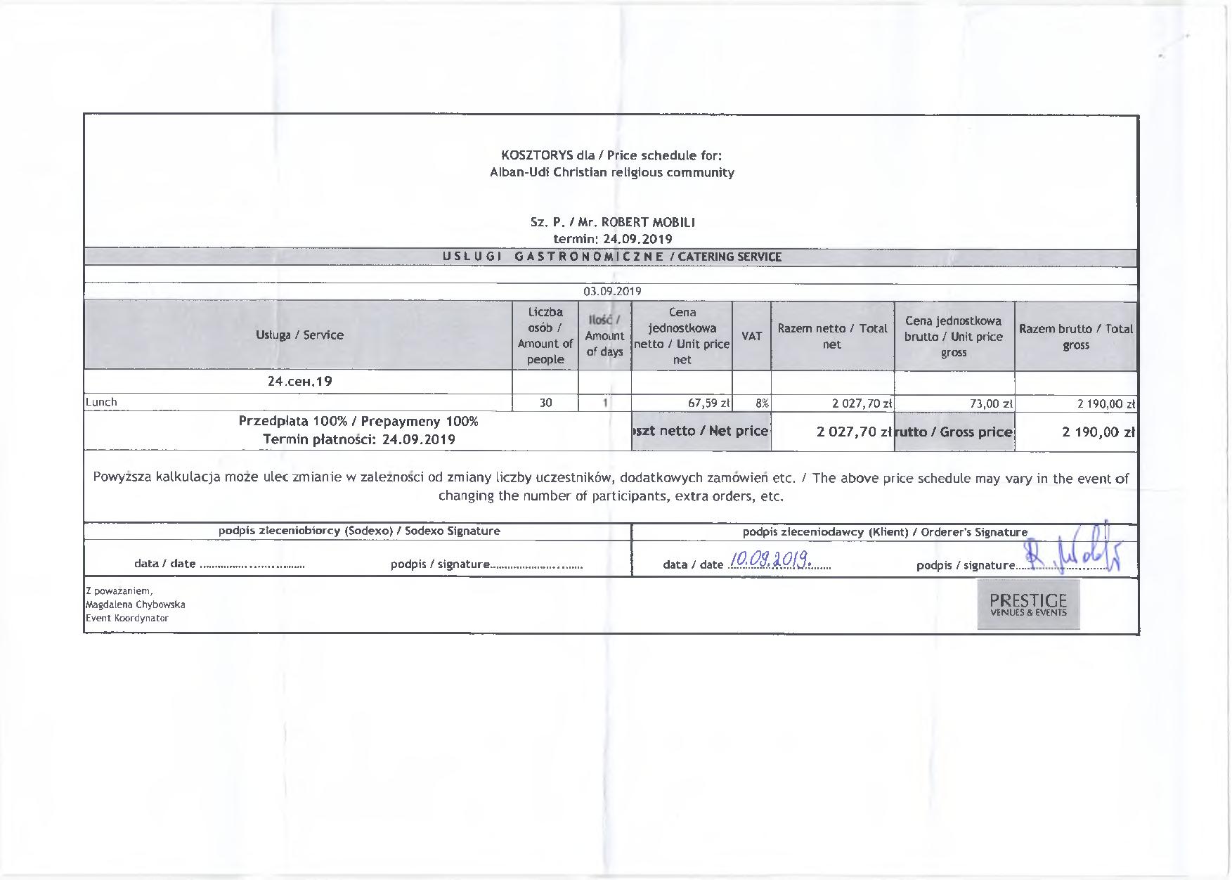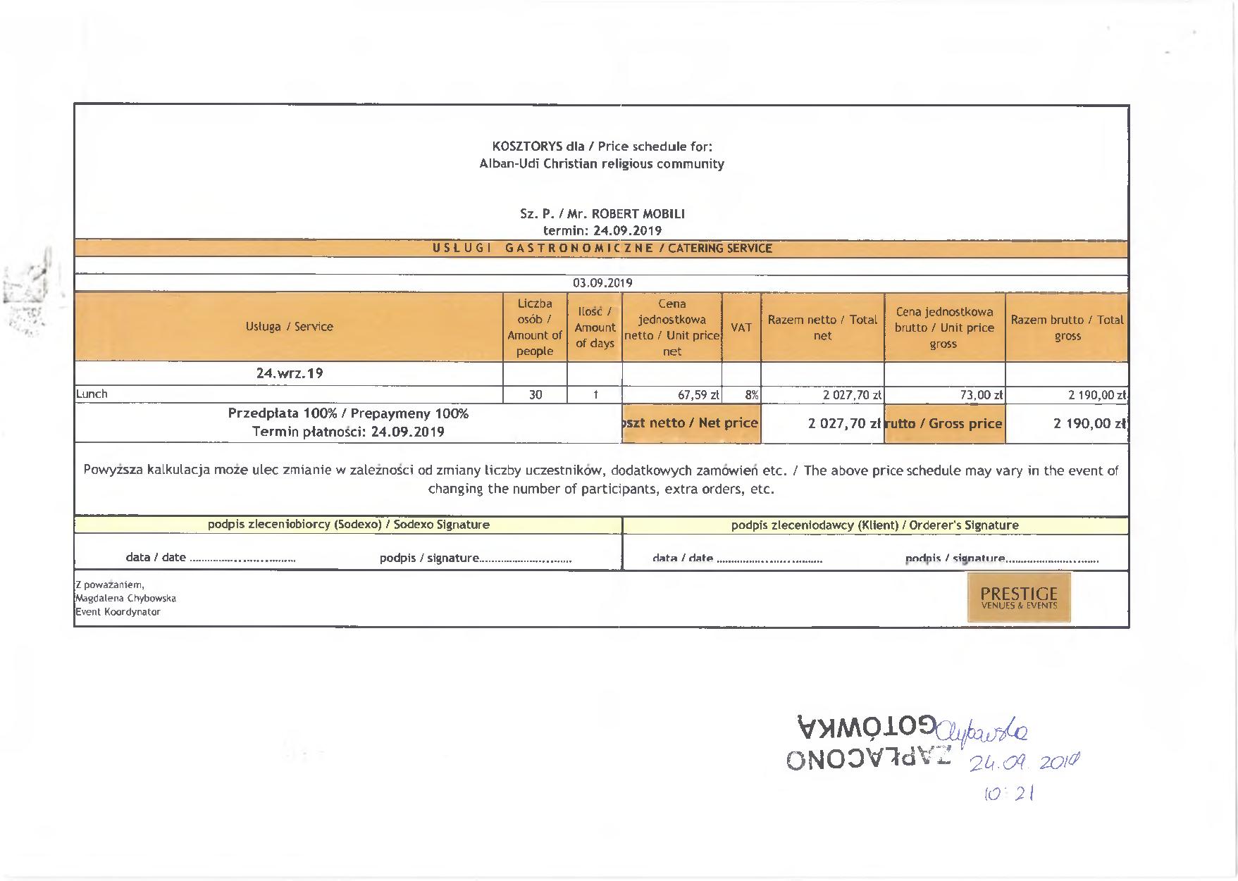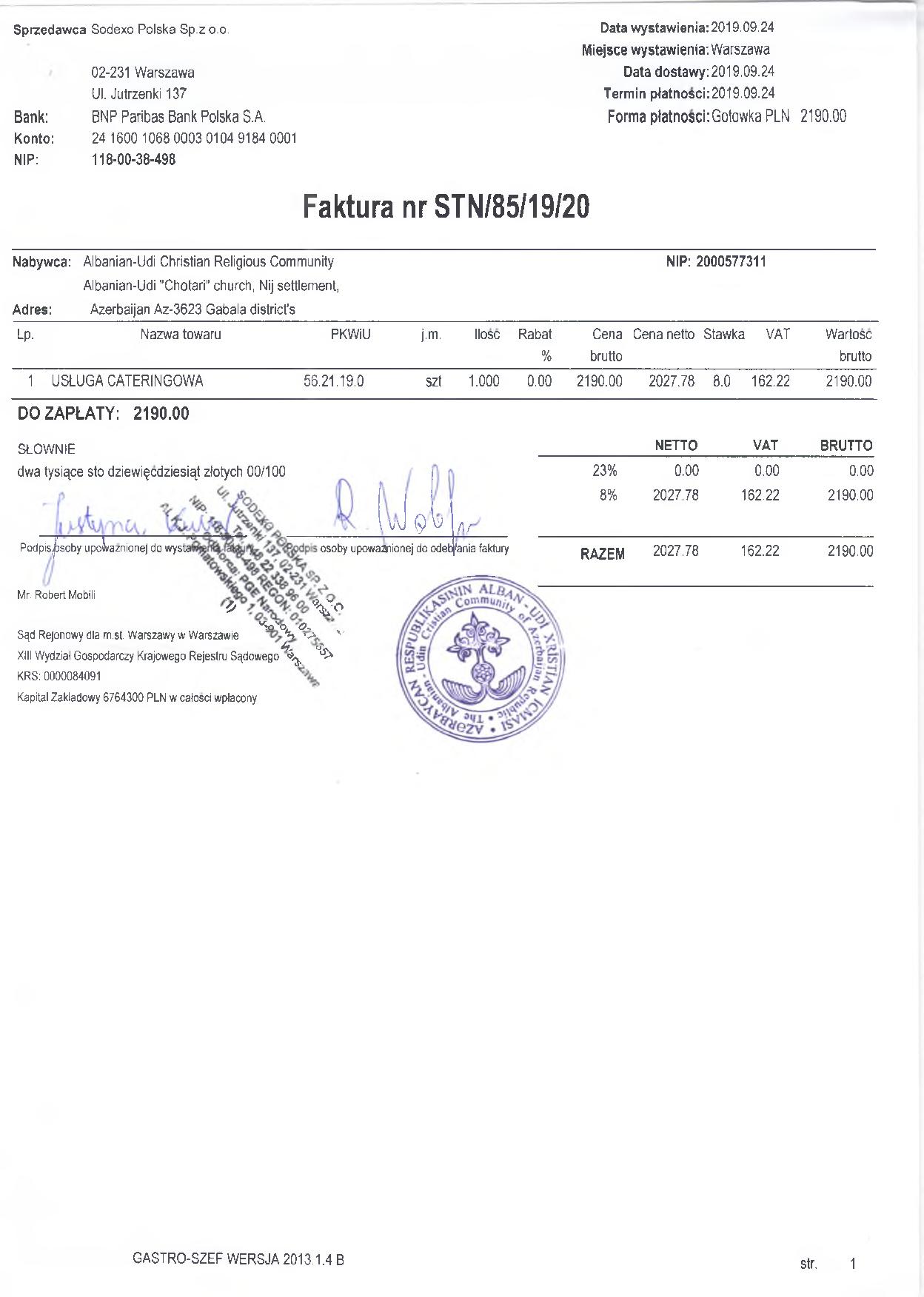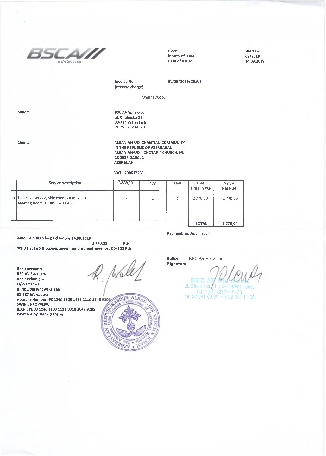 İkincisi, S.Abbasov iddia edir ki, guya sözügedən paralel tədbirin keçirilməsi üçün ən azı 100 nəfərlik yemək masası açılıb və belə təəssürat oyatmağa çalışır ki, sanki böyük məbləğdə pullar xərclənib. Bu böhtanı ifşa etmək üçün əlimizdəki hesab-fakturalara nəzər yetirməyiniz kifayətdir. Belə ki, biz, icma olaraq, cəmi 30 nəfərlik yemək masası sifariş vermişdik. İcmamız tədbirə görə, zalın icarəsi, tərcüməçi, texniki təchizat və yemək xərci daxil olmaqla, ümumilikdə, 4960 Polşa zlotası (1156 Avro) xərcləmişdir. Göründüyü kimi, S.Abbasovun şişirtdiyi rəqəmlər reallıqdan tamamilə uzaqdır və bu xaricdə bir tədbirin keçirilməsi üçün ən minimal məbləğdir;