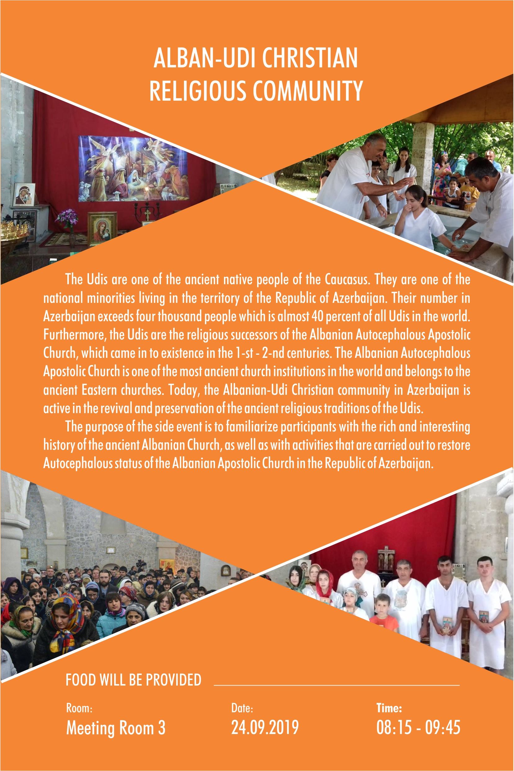 Son günlər bəzi saytlarda Azərbaycan-Slavyan Gənclər Assosiyasiyasının sədri, jurnalist Səbuhi Abbasovun “Facebook” səhifəsindəki yazısına istinadən ATƏT-in tədbiri çərçivəsində bizim icma tərəfindən Varşavada 24 sentyabr 2019-cu ildə təşkil olunmuş “Udilərin dini etiqad məsələsi: Azərbaycan timsalında” adlı tədbirlə bağlı tamamilə böhtan xarakterli məlumat yayılmışdır. Bu isə Alban-udi xristian dini icmasının mənsublarının narahatlığına səbəb olmuş və bizi dərindən məyus etmişdir. Əfsuslar olsun ki, S.Abbasov tərəfindən yayılmış yalan məlumat ictimaiyyəti çaşdırmaqla yanaşı, tədbirimiz barədə yanlış təsəvvür oyatmışdır. Odur ki, məsələyə aydınlıq gətirməyi zəruri hesab edirik.
