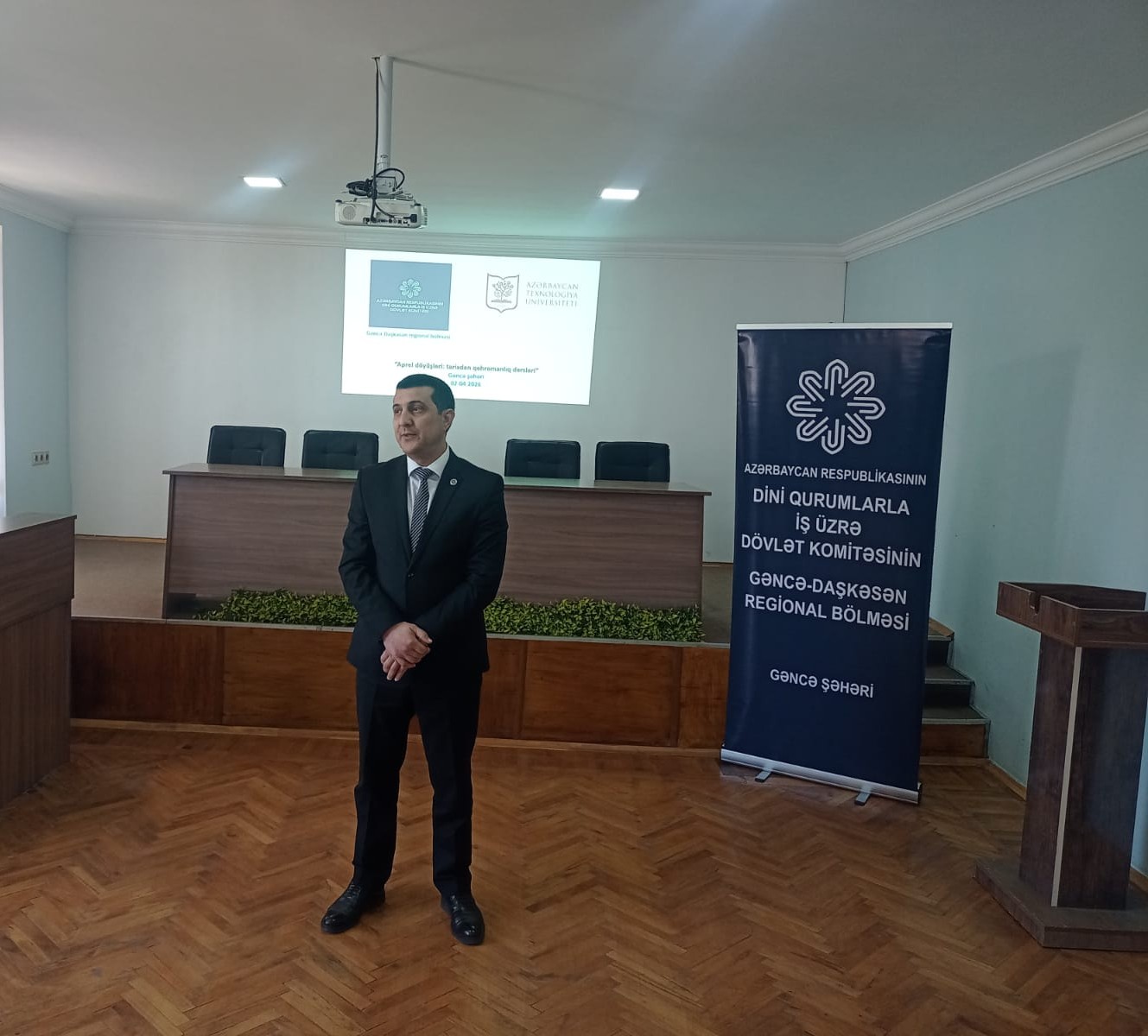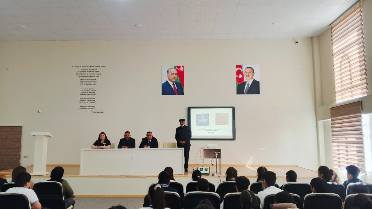 Aprelin 2-də Gəncə şəhərində Azərbaycan Texnologiya Universitetində “Aprel döyüşləri: tarixdən qəhrəmanlıq dərsləri” mövzusunda tədbir keçirilib. Tədbirdə DQİDK-nın Gəncə-Daşkəsən regional bölməsinin müdir müavini Elmar Fətəliyev, müəllim və tələbələr iştirak ediblər.
