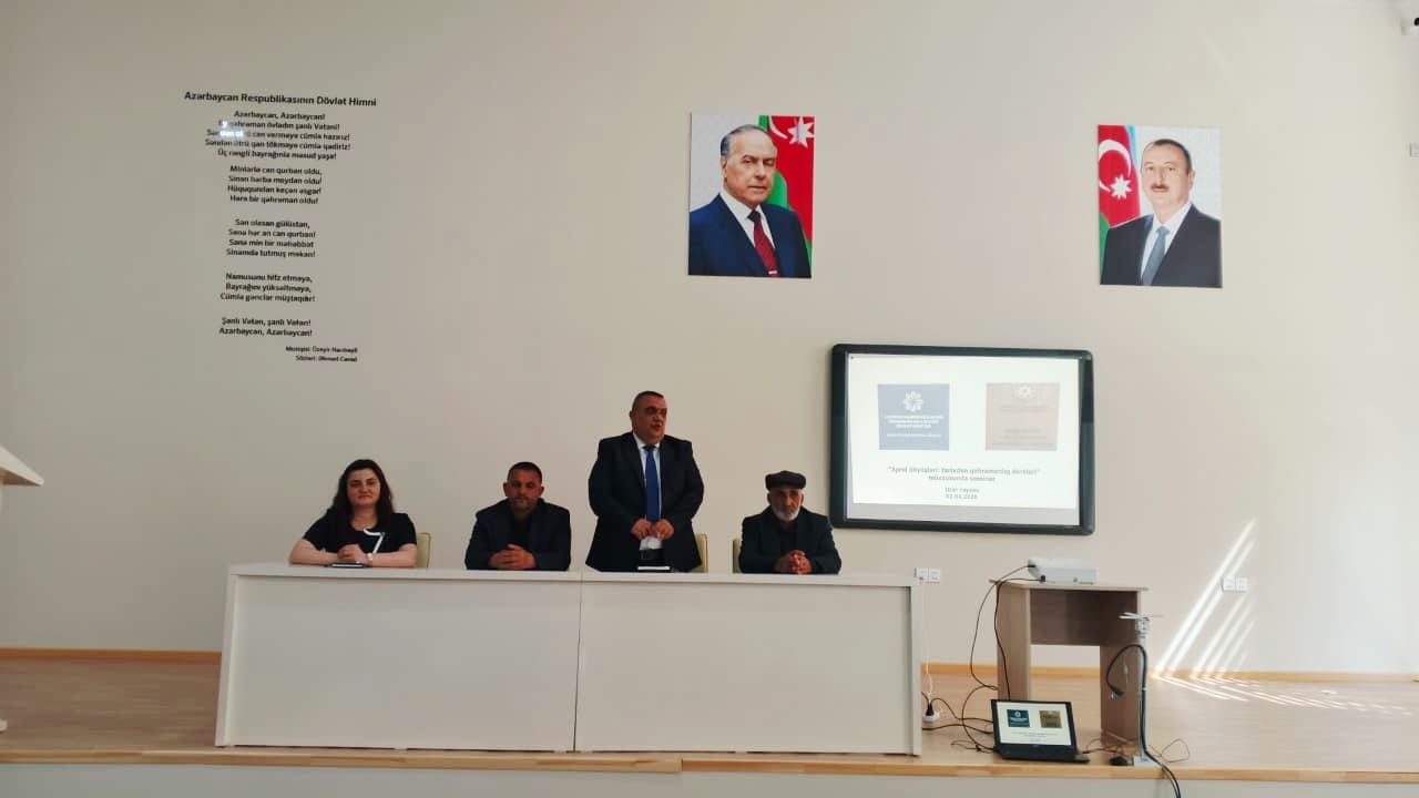 Aprelin 2-də Şəmkir rayonu Aşağı Seyfəli kənd Natiq Abbasov adına tam orta ümumtəhsil məktəbində “Aprel döyüşləri və gənclərin vətənpərvərlik tərbiyəsi” mövzusunda tədbir təşkil olunub. Tədbirdə Dövlət Komitəsinin Qazax-Tovuz regional bölməsinin əməkdaşı Vüqar Əliyev, Şəmkir Rayon İcra Hakimiyyəti (RİH) başçısı Aparatının əməkdaşı Ruhid Hacıyev, müəllimlər və məktəblilər iştirak ediblər.