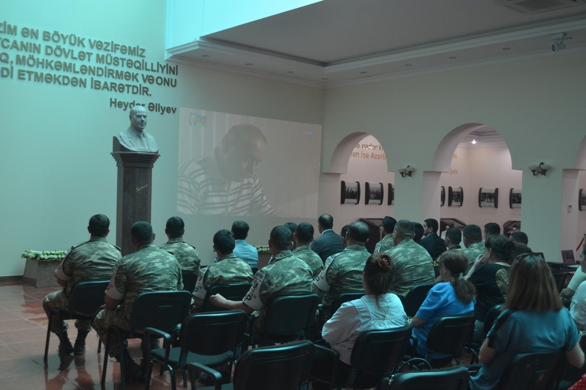 Tədbir iştirakçılarına Ümumilli Lider Heydər Əliyevin həyat və yaradıcılığını əks etdirən sərgi və video nümayiş olunub.