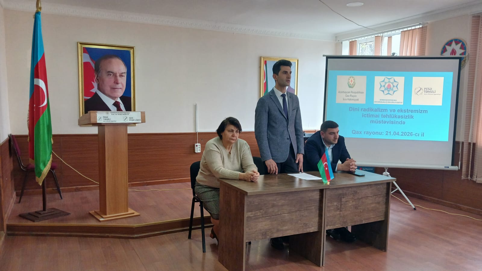 Aprelin 21-də Qax Peşə Liseyində “Dini radikalizm və ekstremizm ictimai təhlükəsizlik müstəvisində” mövzusunda tədbir keçirilib. Tədbirdə Dövlət Komitəsinin Şəki-Zaqatala regional bölməsinin baş məsləhətçisi Tərlan Nəzərov, gənclər, müəllimlər və şagirdlər iştirak ediblər. Dini fanatizmin, radikalizmin və ekstremizmin mahiyyəti, yaratdığı fəsadlar barəsində tədbir iştirakçılarına geniş məlumat verilib. Eyni zamanda, gənclərin radikal və ekstremist ideologiyalardan uzaq tutulmasının, sağlam düşüncə tərzinin formalaşdırılmasının və milli-mənəvi dəyərlərə sadiq gəncliyin yetişdirilməsinin vacibliyindən bəhs edilib.