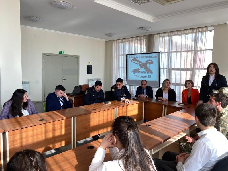 Daha bir maarifləndirmə tədbiri Abşeron rayonu ərazisində yerləşən Zəngilan 5 saylı tam orta məktəbində keçirilib. Tədbirdə DQİDK-nın Sumqayıt bölgəsi üzrə şöbəsinin əməkdaşı Ülvi Məmmədov, Zəngilan Rayon Polis Şöbəsinin əməkdaşları Rəşad Şahməmmədov, Yavər Museyibov, məktəbin müəllim və şagirdləri iştirak ediblər. DQİDK-nin Masallı bölgəsi üzrə şöbəsinin əməkdaşı Pərvin İmanov, Yardımlı RPŞ-nin rəisi Arif Babayev, rayon Gənclər və İdman İdarəsinin rəisi Şəhriyar Şabiyev, müəllim və şagirdlərin iştirakı ilə rayonun N.Cəbiyev adına Çayüzü kənd tam orta məktəbində də maarifləndirmə tədbiri keçirilib.