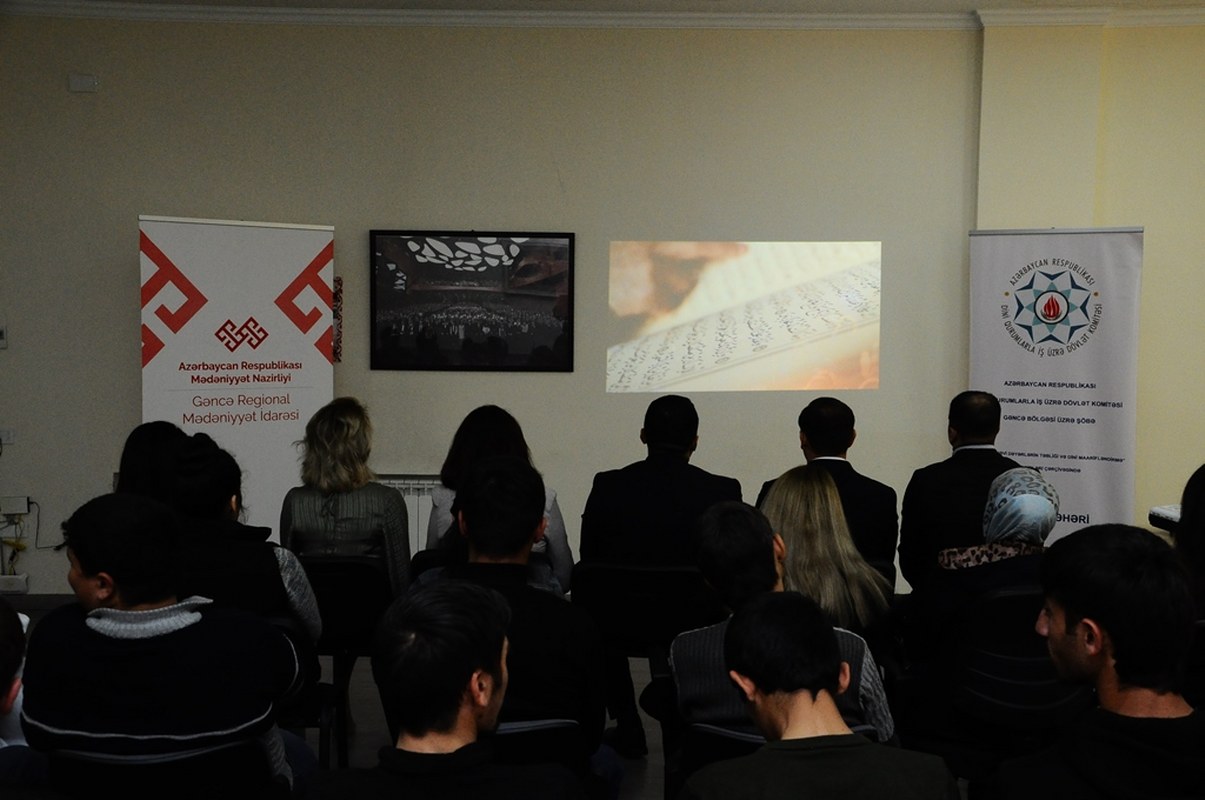 Tədbirdə DQİDK-nın Gəncə bölgəsinin əməkdaşı Kamal Ələkbərov, İH-nin sektor müdiri-dini qurumlarla işin təşkilatçısı Ülfət Əliyev, Heydər Əliyev Mərkəzinin direktoru Faiqə Ağayeva, şəhər peşə məktəbinin müəllim və tələbələri iştirak edib.