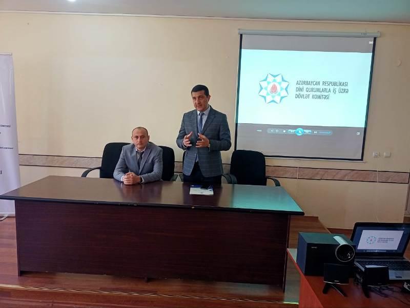 Aprelin 4-də Dini Qurumlarla İş üzrə Dövlət Komitəsinin (DQİDK) Gəncə bölgəsi üzrə şöbəsinin təşkilatçılığı ilə Gəncə şəhər N.Hüseynov adına 38 nömrəli tam orta məktəbində “Məktəblilərin mənəvi dünyagörüşünə təsir edən amillər” mövzusunda maarifləndirici tədbir keçirilib.