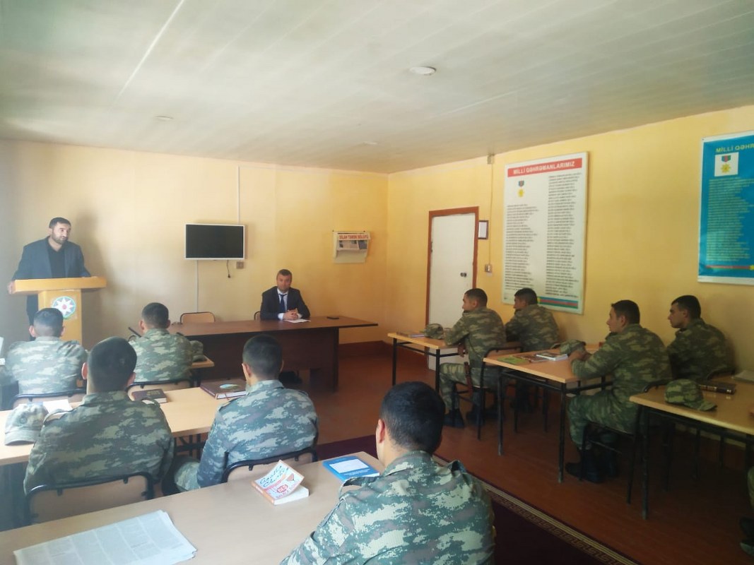 Hərbi hissədə “Dini fanatizm, radikalizm və ekstremizmin mahiyyəti və təhlükələri” mövzusunda maarifləndirici tədbir keçirilib