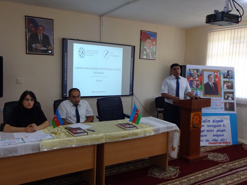 İyunun 9-da DQİDK-nın Şəki bölgəsi üzrə şöbəsi, Oğuz rayon Gİİ və Peşə məktəbinin birgə təşkilatçılığı ilə “İnsanların inanc azadlığına hörmət hüquqi və mənəvi borcumuzdur” mövzusunda tədbir keçirilib. Tədbirdə Komitənin əməkdaşı Samir Salehov, Gİİ-nin rəis müavini Şaiq Rüstəmov, Peşə məktəbinin müəllim və şagird kollektivi iştirak edib.