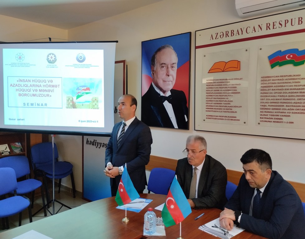 Eyni gündə DQİDK-nın Şirvan bölgəsi üzrə şöbəsinin təşkilatçılığı ilə “İnsan Hüquqları çərçivəsində uşaq hüquqlarının qorunması” mövzusunda keçirilən seminarda Komitə əməkdaşı Zamin Əsədov, təhsil işçiləri və şagirdlər iştirak ediblər.