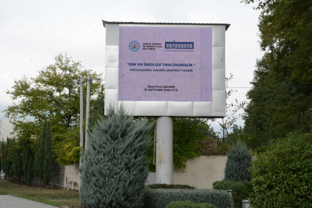 Oktyabrın 17-də İsmayıllı rayonunda Dini Qurumlarla İş üzrə Dövlət Komitəsi (DQİDK) və İsmayıllı Rayon İcra Hakimiyyətinin (RİH) birgə təşkilatçılığı ilə “Din və ideoloji təhlükəsizlik” mövzusunda tədbir keçirilib.