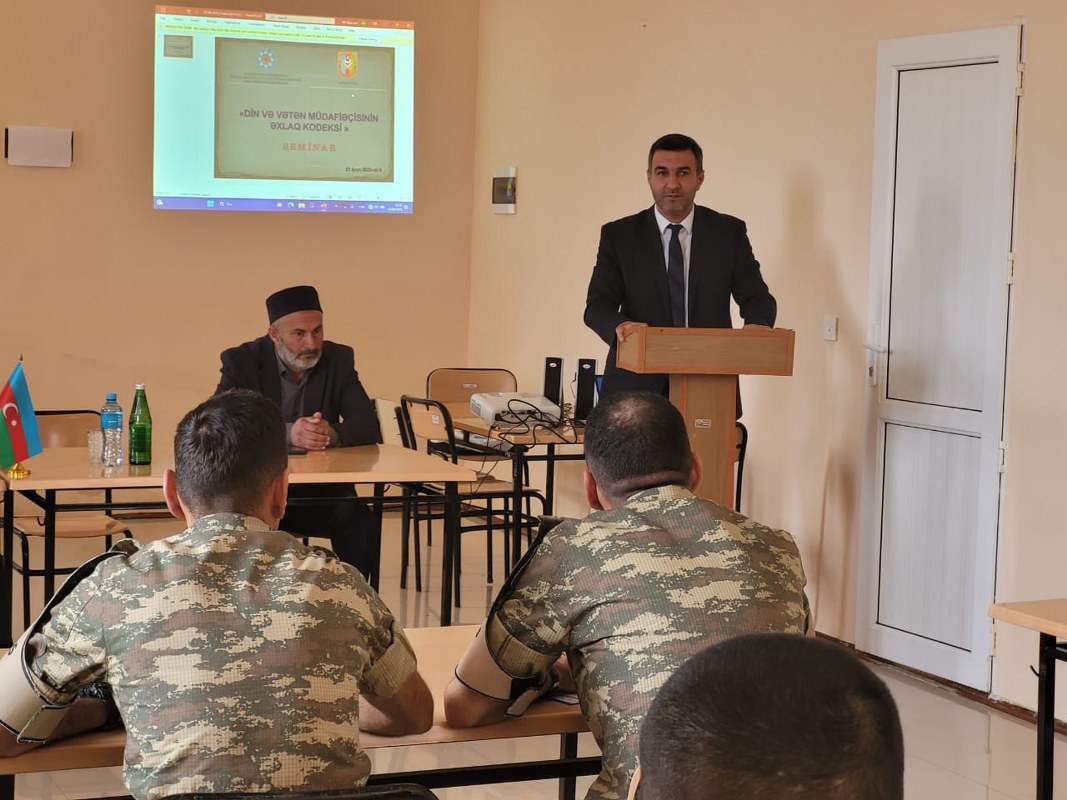 Müdafiə Nazirliyinin “N” saylı hərbi hissəsində “Vətən və din müdafiəçisinin əxlaq kodeksi” mövzusu müzakirə edilib