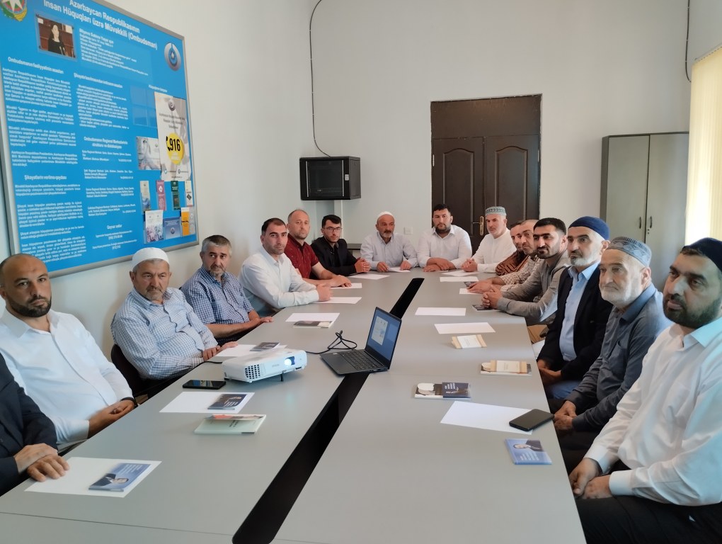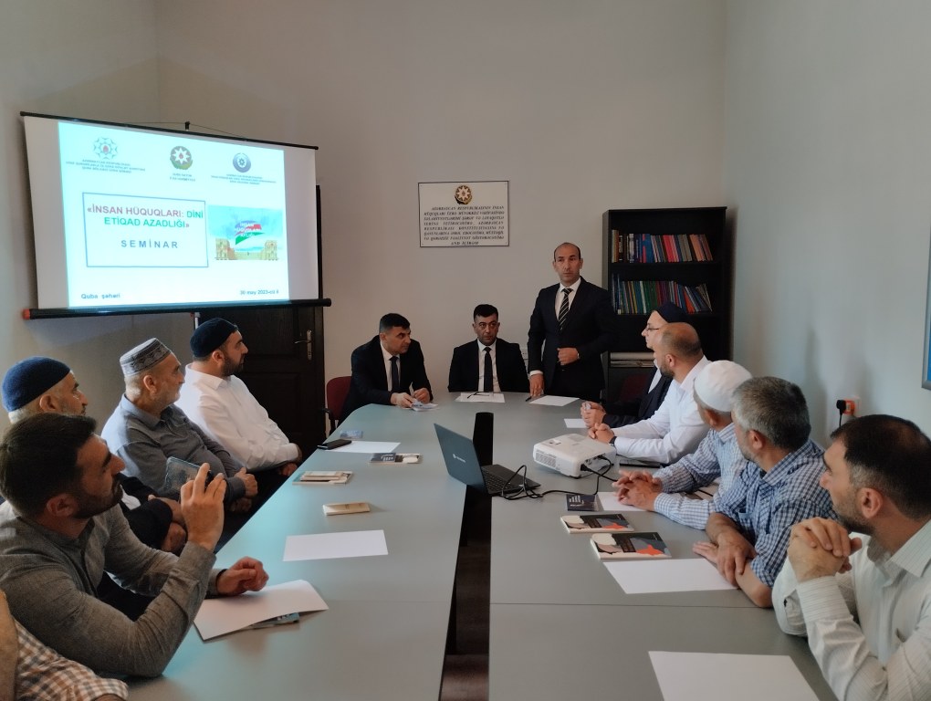 Mayın 30-da Dini Qurumlarla İş üzrə Dövlət Komitəsinin (DQİDK) Quba bölgəsi üzrə şöbəsi, Quba Rayon İcra Hakimiyyəti (RİH) və İnsan Hüquqları üzrə Müvəkkilin (Ombudsman) Şimal regional mərkəzinin birgə təşkilatçılığı ilə “İnsan hüquqları: dini etiqad azadlığı” adlı seminar keçirilib. Seminarda DQİDK-nın Quba bölgəsi üzrə şöbəsinin müdiri Ramin Xudayev, Quba RİH başçısı Aparatının İctimai-siyasi və humanitar məsələlər şöbəsinin müdir müavini-dini qurumlarla işin təşkilatçısı Anar Məmmədov, İnsan Hüquqları üzrə Müvəkkilin (Ombudsman) Şimal regional mərkəzinin rəhbəri Bəhruz Əfəndiyev, dini icma sədrləri, din xadimləri iştirak ediblər.