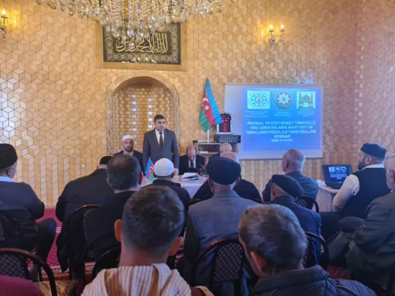 Oktyabrın 19-da Dini Qurumlarla İş üzrə Dövlət Komitəsinin (DQİDK) Quba bölgəsi üzrə şöbəsi, Quba Rayon İcra Hakimiyyəti (RİH), II Nügədi kəndi “Hacı Seyid Siracəddin” məscidi dini icmasının birgə təşkilatçılığı ilə “Radikal və ekstremist təmayüllü dini cərəyanların mahiyyəti və gənclərə psixoloji təsir üsulları” mövzusunda seminar keçirilib.