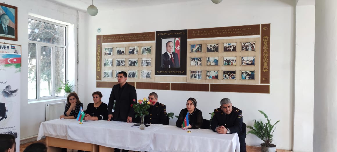Tədbirdə Dövlət Komitəsinin Gəncə bölgəsi üzrə şöbəsinin əməkdaşı Rövşən Hacıyev, Rayon Polis Şöbəsinin rəis müavini Arzu Məmmədov, məktəbin müəllim və şagirdləri iştirak ediblər.