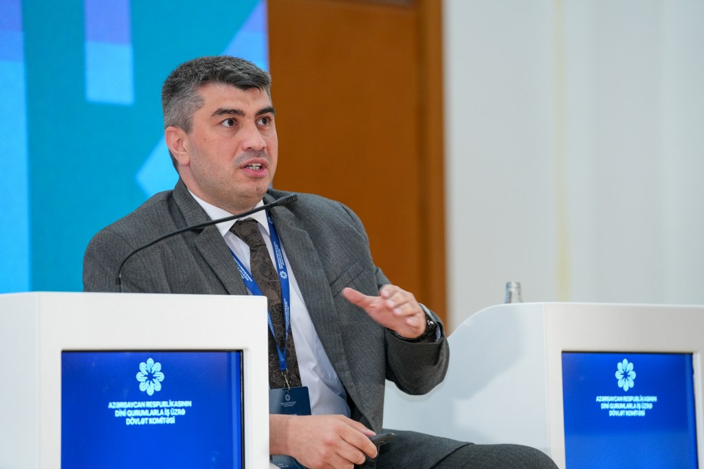 AMEA-nın akademik Ziya Bünyadov adına Şərqşünaslıq İnstitutunun direktor müavini, Dini Qurumlarla İş üzrə Dövlət Komitəsi yanında fəaliyyət göstərən İctimai Şuranın sədri, fəlsəfə üzrə fəlsəfə doktoru, dosent Elnur Mustafayev “Dövlət-din münasibətləri kontekstində tarixi-dini abidələrin mühafizəsinin əhəmiyyəti və perspektivləri” mövzusunda çıxış edib. Tarixi dini abidələrin qorunması və bərpasının milli kimliyin, mənəvi dəyərlərin və ümumbəşəri mədəni irsin saxlanılmasında mühüm rol oynadığını, eyni zamanda tolerantlıq və multikulturalizmi gücləndirdiyini deyib. Bu siyasətin həm cəmiyyətin daxili həmrəyliyini möhkəmləndirdiyini, həm də dövlətin beynəlxalq nüfuzunun artmasına və mədəniyyətlərarası dialoqun inkişafına töhfə verdiyini vurğulayıb.