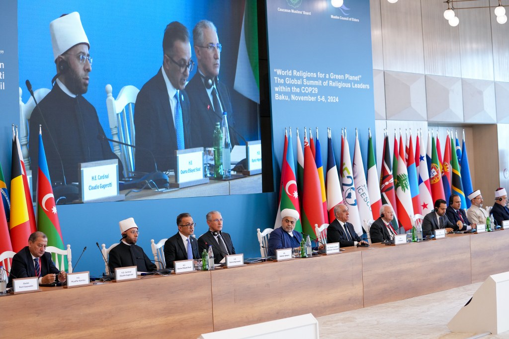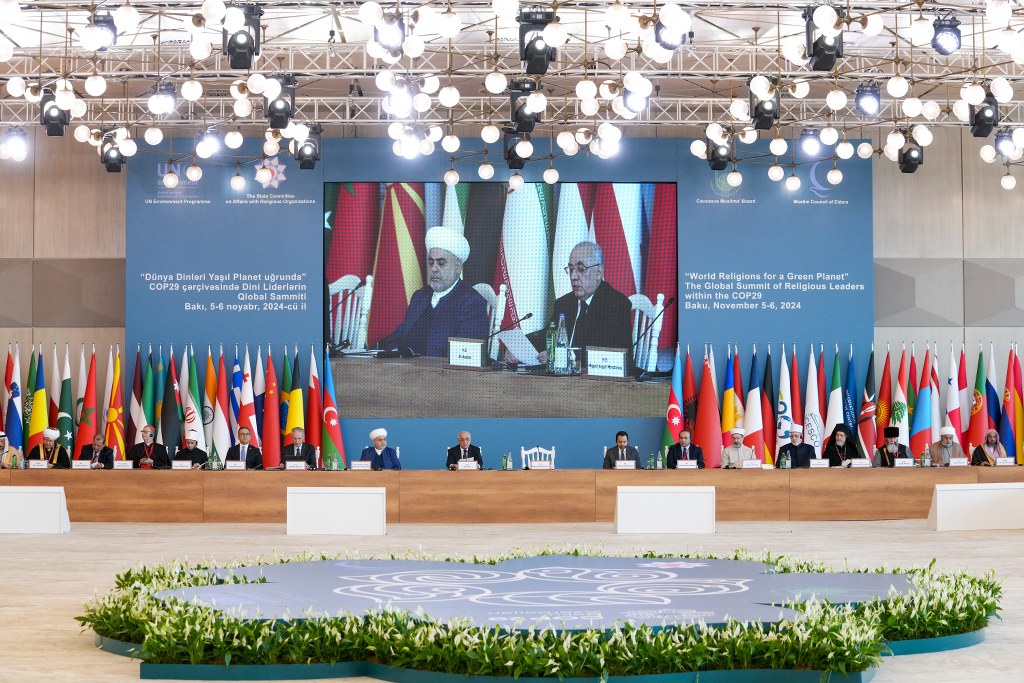 The Global Baku Summit of World Religious Leaders on the theme "World Religions for a Green Planet" is being held under the initiative and patronage of President Ilham Aliyev, within the framework of the 29th session of the Conference of the Parties to the United Nations Framework Convention on Climate Change (COP29), the Ministry of Ecology and Natural Resources of Azerbaijan, the State Committee on Affairs with Religious Associations, the International Council of Muslim Elders, the Office of Caucasian Muslims and the UN Environment Program.