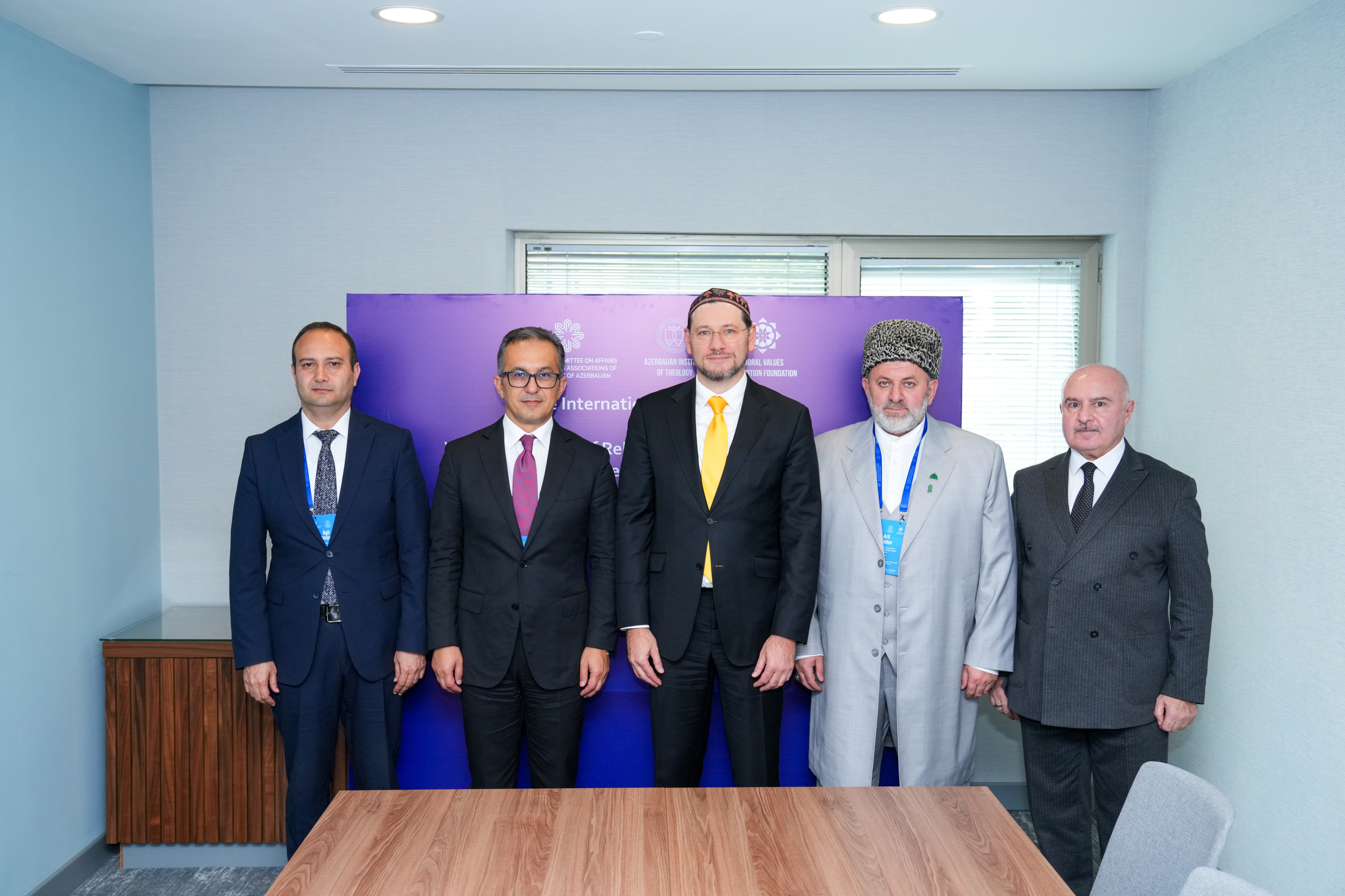Meetings were held with Zekeriya Akman, Rector of Kilis 7 Aralık University, Türkiye; Sahibzada Sultan Ahmed Ali, Chairman of the MUSLIM Institute, Pakistan; Ahmad Hussein Mohammed Ibrahim, Rector of “Nur-Mubarak” Misr Islamic Culture University, Kazakhstan; Bahman Baktiari, Executive Director of the Baskerville Institute, USA; Giorgi Zviadadze, Rector of Tbilisi Spiritual Academy and Seminary; Damir Muhetdinov, First Deputy Chairman of the Spiritual Administration of Muslims of the Russian Federation, Rector of Moscow Islamic Institute, and Honorary Professor of Azerbaijan Institute of Theology; and Arif Saidov, Rector of Sheikh Abdullah Efendi Islamic University, Russia. Discussions focused on the development prospects of cooperation in the religious and moral spheres, including religious education.