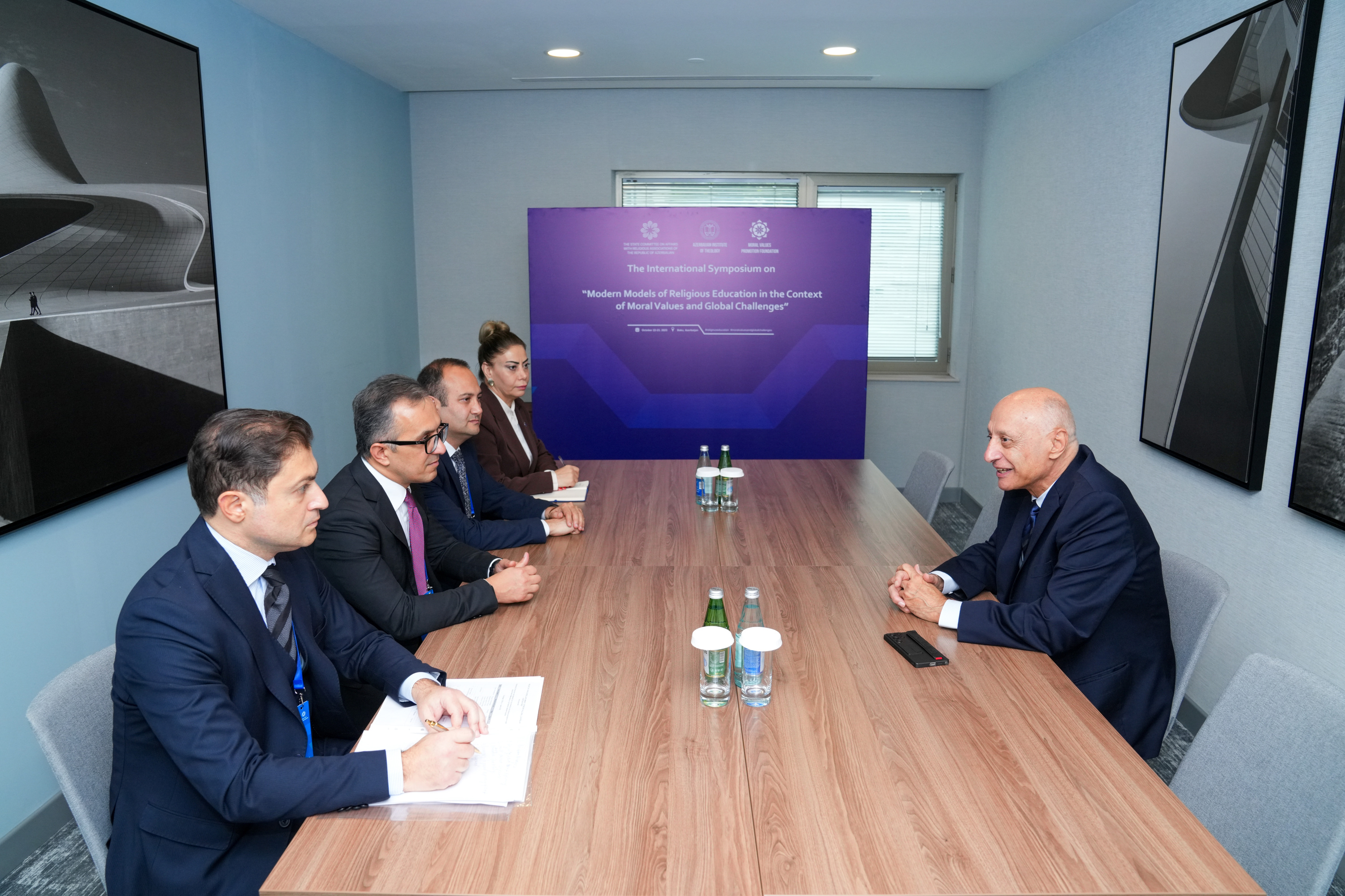 On October 22, as part of the international symposium titled “Modern Models of Religious Education: Moral Values in the Context of Global Challenges,” the Chairman of the State Committee on Affairs with Religious Associations, Ramin Mammadov, held meetings with heads of religious and academic institutions from several countries.