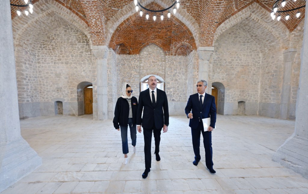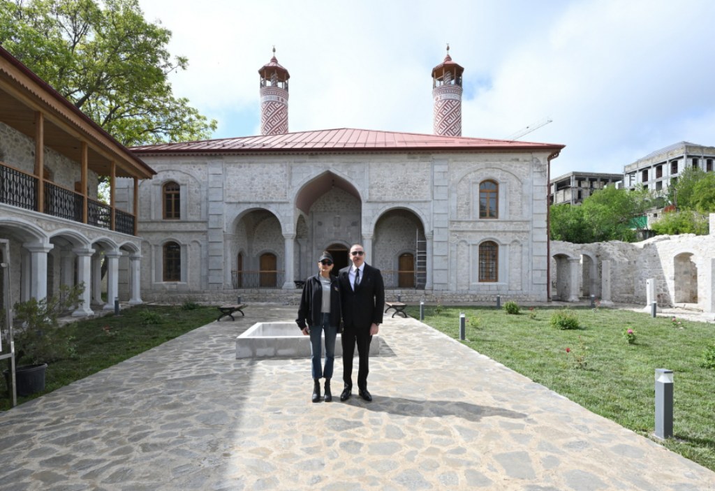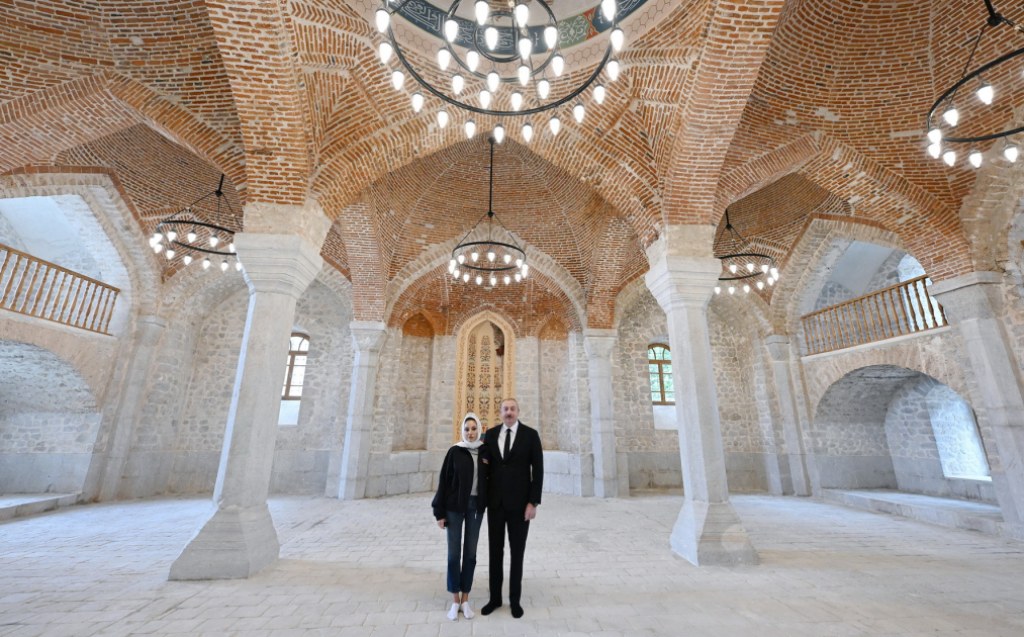 President of the Republic of Azerbaijan Ilham Aliyev and First Lady Mehriban Aliyeva reviewed ongoing restoration work at Ashaghi Govhar Agha Mosque