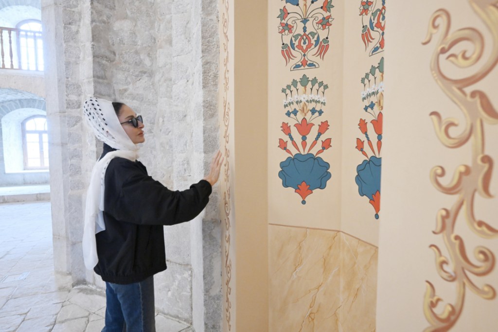 The head of state and the First Lady received detailed briefings on the restoration process. The project is led by the Heydar Aliyev Foundation with support from PASHA Holding and involves experts from Austria, Italy, Latvia, and Türkiye.