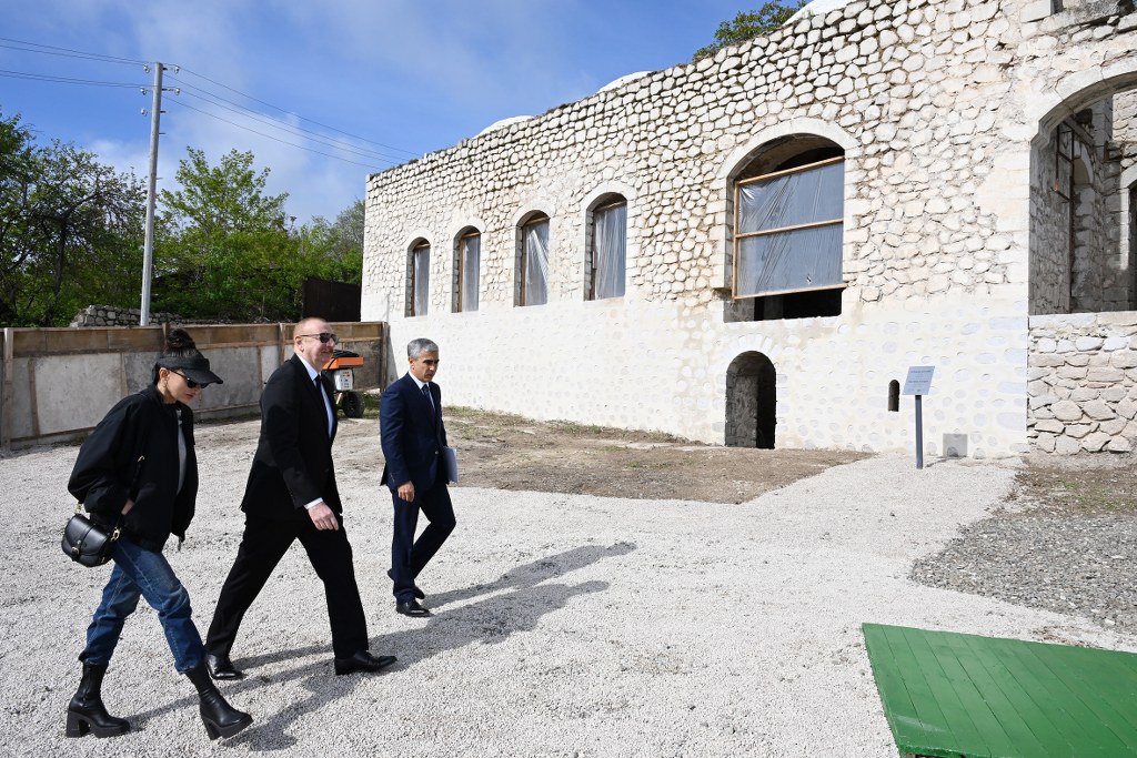 President of the Republic of Azerbaijan Ilham Aliyev and First Lady Mehriban Aliyeva viewed restoration works at Chol Gala Mosque in Shusha
