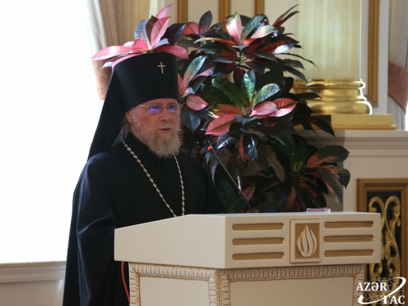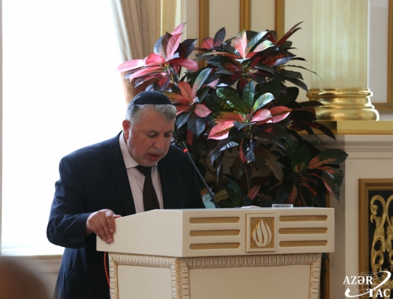 Other speakers at the event included chairman of Azerbaijan Council of Elders, MP Fattah Heydarov, Chairman of the Writers' Union, People's writer Anar, chairman of the parliamentary Committee on public unions and religious organizations Siyavush Novruzov, head of the Department of Interethnic Relations, Multiculturalism and Religious Affairs of the Presidential Administration of Azerbaijan Etibar Najafov, First Vice-Speaker of Azerbaijan`s Parliament Ziyafat Asgarov, Secretary General of the Organization of Islamic Cooperation (OIC) Yousef Bin Ahmed Al-Othaimeen, Chairperson of State Committee for Family, Women and Children Affairs of Azerbaijan Hijran Huseynova, Secretary General of the Parliamentary Assembly of the Black Sea Economic Cooperation Organization (PABSEC) Asaf Hajiyev, Archbishop of Baku and Azerbaijan Eparchy of the Russian Orthodox Church Alexander Ischein, Chairman of the Religious Community of Mountain Jews in Baku Milikh Yevdayev and First Deputy Chairman of the Caucasian Muslims Office Haji Salman Musayev.