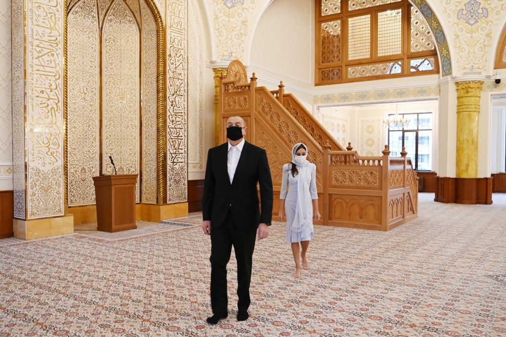 President Ilham Aliyev and First Lady Mehriban Aliyeva viewed conditions created at new building of “Khanim Fatimeyi Zahra” mosque in Yeni Gunashli