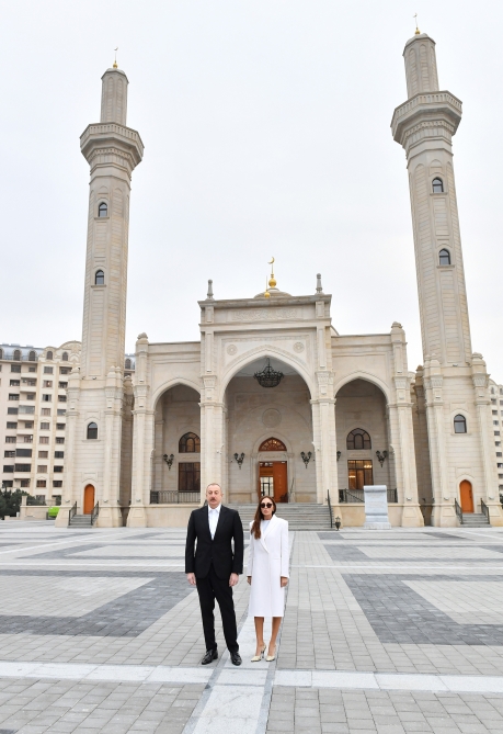 President of the Republic of Azerbaijan Ilham Aliyev and First Lady Mehriban Aliyeva have viewed conditions created at a new building of the “Khanim Fatimeyi Zahra” mosque in Yeni Gunashli settlement, Surakhani district, Baku.