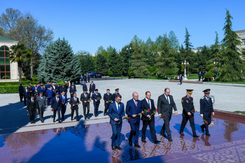 Tədbirdən öncə konfrans iştirakçıları Ulu Öndər Heydər Əliyevin Quzanlı qəsəbəsinin mərkəzində ucaldılan abidəsini ziyarət edib, önünə gül dəstələri düzüblər.