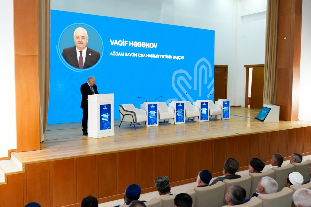 Tədbirdə çıxış edən Ağdam Rayon İcra Hakimiyyətinin başçısı Vaqif Həsənov Azərbaycanda dövlət-din münasibətlərinin hüquqi əsaslar üzərində qurulduğunu və bu sahədə məqsədyönlü dövlət siyasətinin həyata keçirildiyini vurğulayıb. RİH başçısı bildirib ki, ölkəmizdə dini müxtəliflik və multikultural mühit qorunaraq inkişaf etdirilir, vicdan azadlığı təmin olunur və tolerantlıq ənənələri gücləndirilir. Azərbaycan Respublikasının Prezidenti cənab İlham Əliyevin və Birinci vitse-prezident Mehriban xanım Əliyevanın rəhbərliyi ilə dini-mənəvi dəyərlərin qorunması, tarixi-dini abidələrin bərpası və din xadimlərinə göstərilən dövlət qayğısı bu sahədə uğurlu nəticələrin əldə olunmasına şərait yaradıb.