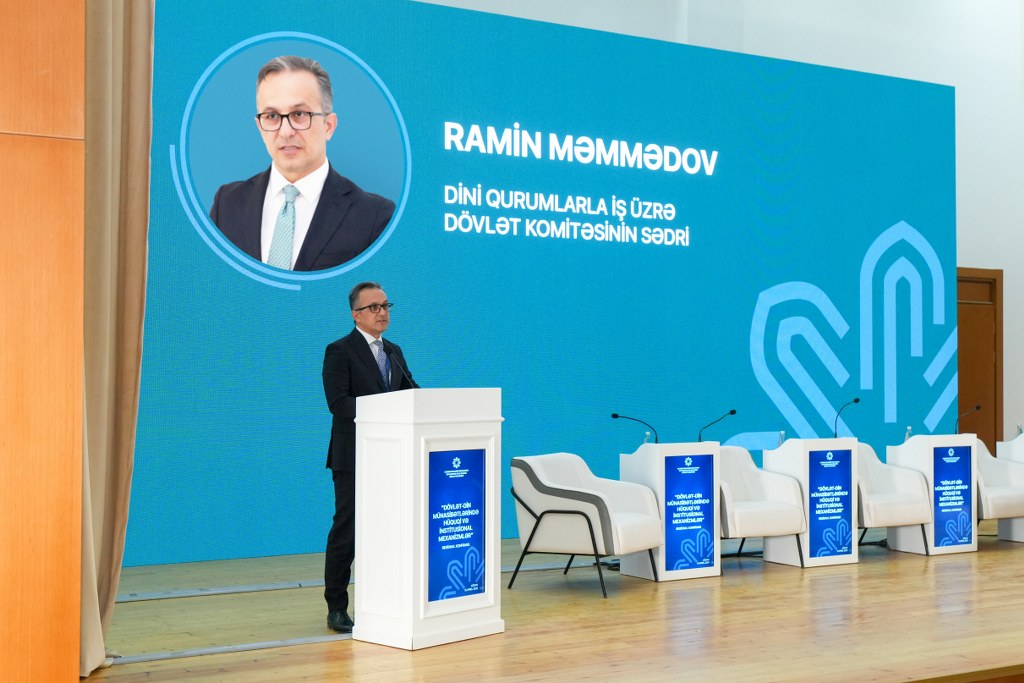 Ramin Məmmədov deyib ki, Azərbaycanda dövlət-din münasibətləri möhkəm hüquqi baza və effektiv institusional mexanizmlər əsasında qurulub, Konstitusiyada təsbit olunmuş dünyəvilik prinsipi çərçivəsində vicdan azadlığı təmin edilir, dini icmaların fəaliyyəti qanunvericiliklə tənzimlənir. Bu mexanizmlər həm dini azadlıqların qorunmasına, həm də zərərli ideoloji təsirlərin qarşısının alınmasına xidmət edir.