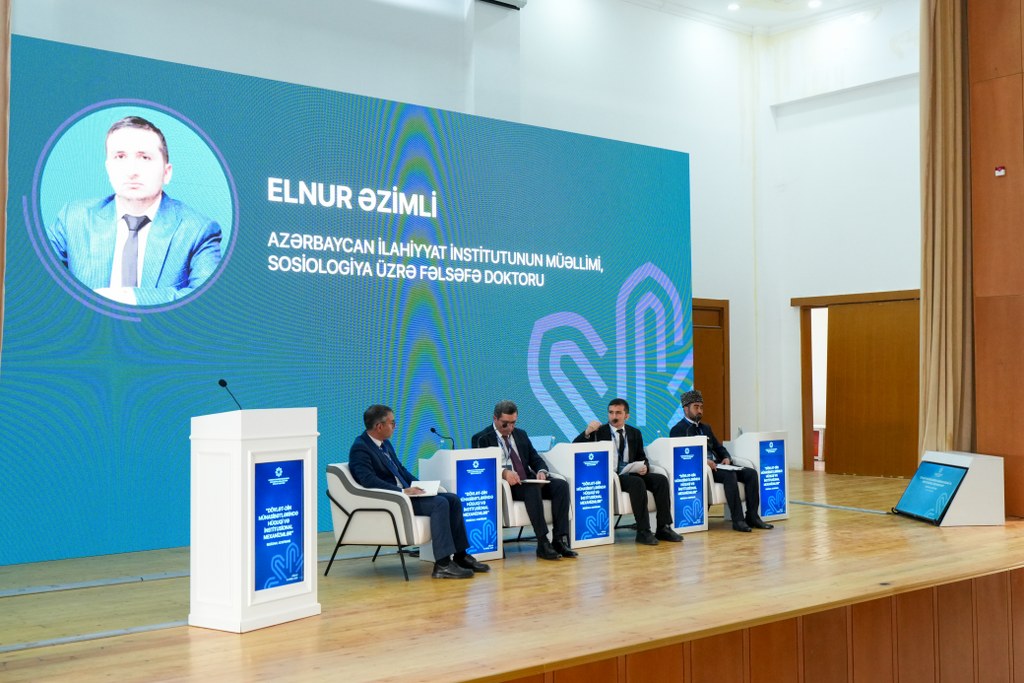 Azərbaycan İlahiyyat İnstitutunun müəllimi, Sosiologiya üzrə fəlsəfə doktoru Elnur Əzimli “Dövlət-din münasibətlərinin mahiyyəti və modelləri” mövzusunda çıxışında dinin mənəvi-əxlaqi dəyərlərin formalaşmasında fəal iştirak edən, dövlətin isə cəmiyyətdə qaydaları müəyyən edən institut olduğunu vurğulayıb. Müasir dünyada geniş yayılan sekulyarizm modelinin fərdi dini azadlıqları təmin etdiyini bildirib.