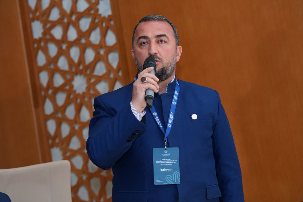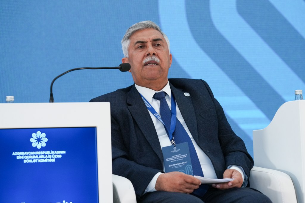 AMEA-nın akademik Ziya Bünyadov adına Şərqşünaslıq İnstitutunun direktor müavini, Dini Qurumlarla İş üzrə Dövlət Komitəsi yanında fəaliyyət göstərən İctimai Şuranın sədri, fəlsəfə üzrə fəlsəfə doktoru, dosent Elnur Mustafayev “Dövlət-din münasibətləri kontekstində tarixi-dini abidələrin mühafizəsinin əhəmiyyəti və perspektivləri” mövzusunda çıxış edib. Tarixi dini abidələrin qorunması və bərpasının milli kimliyin, mənəvi dəyərlərin və ümumbəşəri mədəni irsin saxlanılmasında mühüm rol oynadığını, eyni zamanda tolerantlıq və multikulturalizmi gücləndirdiyini deyib. Bu siyasətin həm cəmiyyətin daxili həmrəyliyini möhkəmləndirdiyini, həm də dövlətin beynəlxalq nüfuzunun artmasına və mədəniyyətlərarası dialoqun inkişafına töhfə verdiyini vurğulayıb.